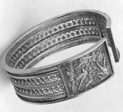 Stijve, opengewerkte filigrain band, zonder sluiting.- Trefwoorden