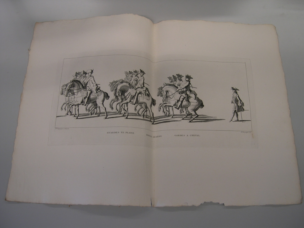 - opschrift onder gravure: Guardes te paard