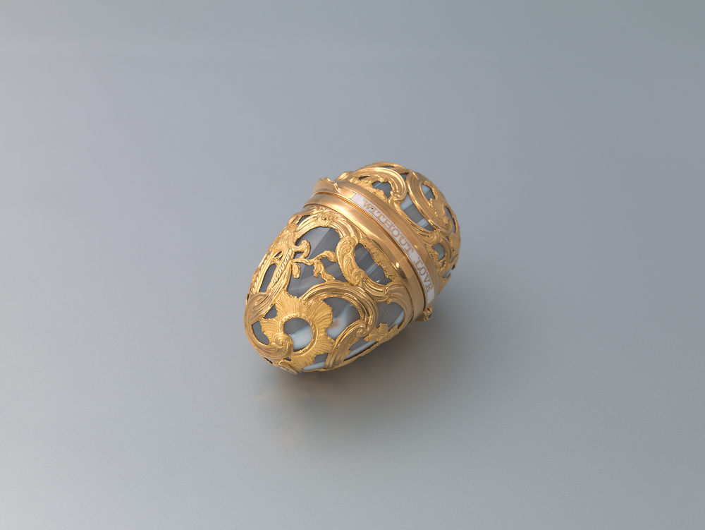 - Eivormige snuifdoos met opschrift ‘No pleasure without love’, 1740 - 1760