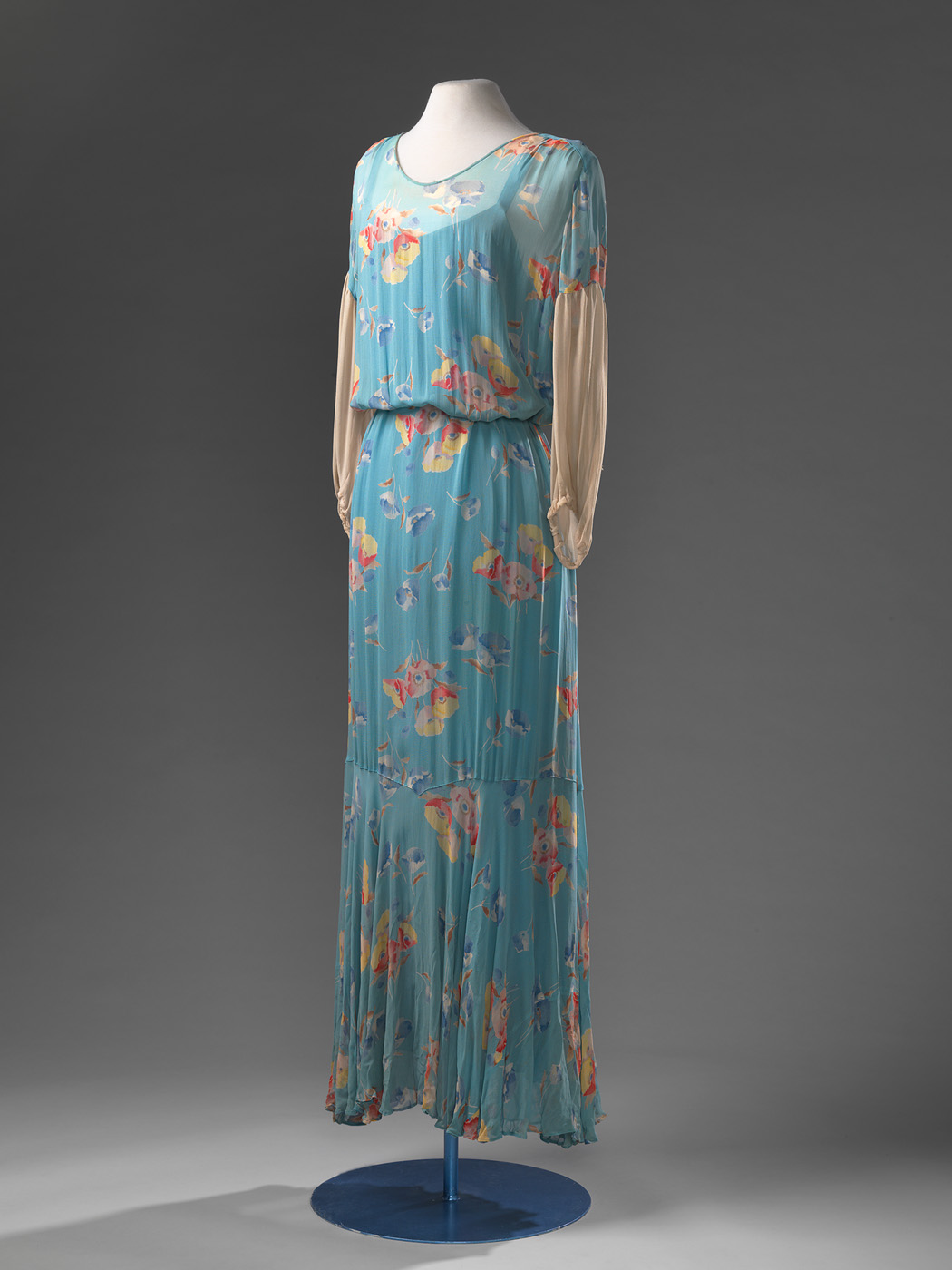 Ondanks dat de stoffen schaarser worden dankzij de economische crises die in 1929 begon, worden de avondjurken juist langer. De jurken reiken tot aan de enkels of vallen op de grond. ( Leonie Sterenborg)