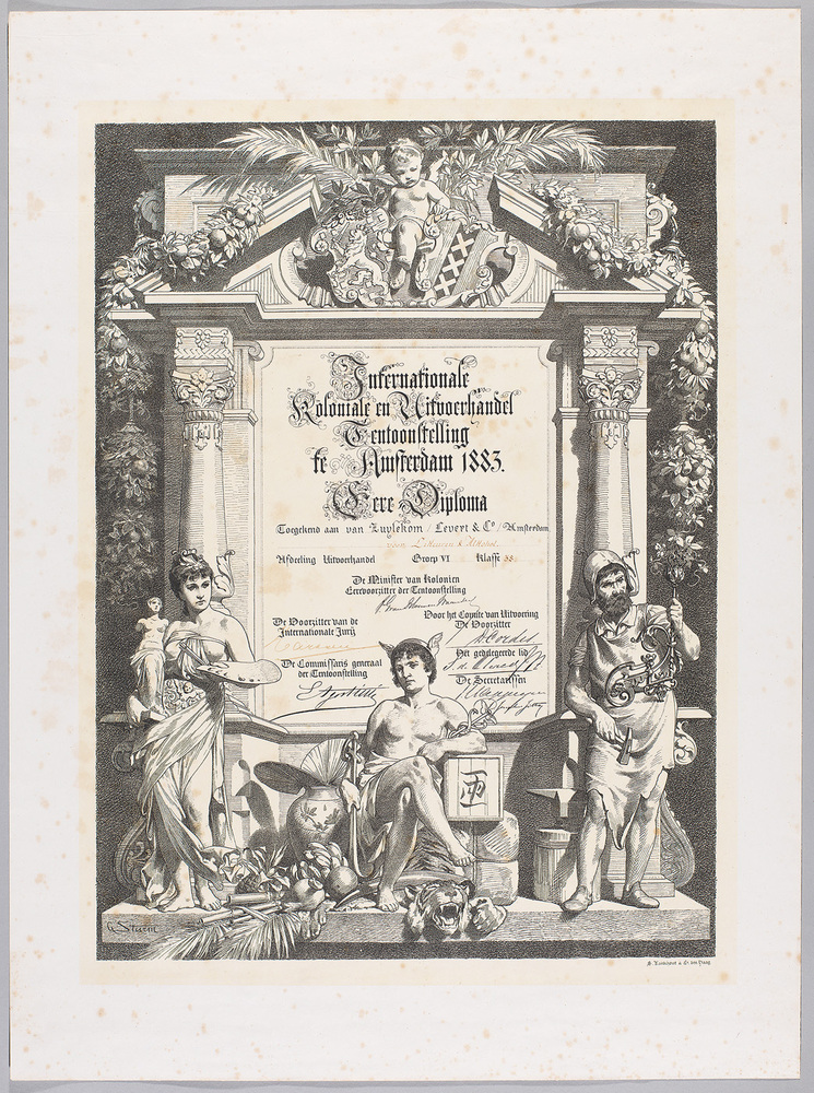 - Diploma uitgereikt aan Van Zuylekom/Levert & Co. te Amsterdam, 1883