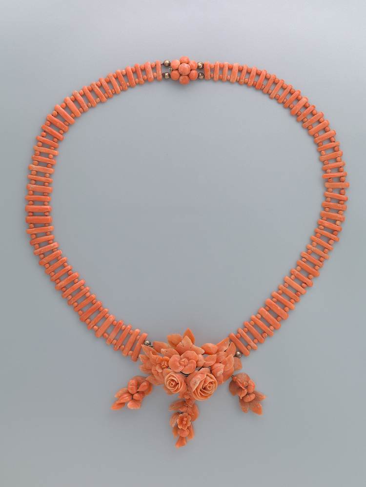 - Collier met een middenstuk van gesneden bloemen en bladeren, 1850 - 1870